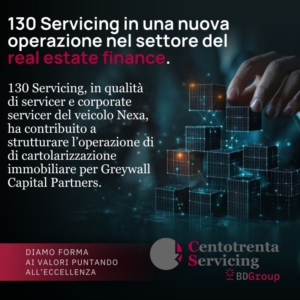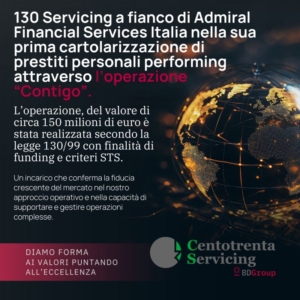 130 Servicing vanta un’esperienza consolidata e pluriennale nella gestione di tutti gli aspetti relativi alle operazioni di cartolarizzazione,
